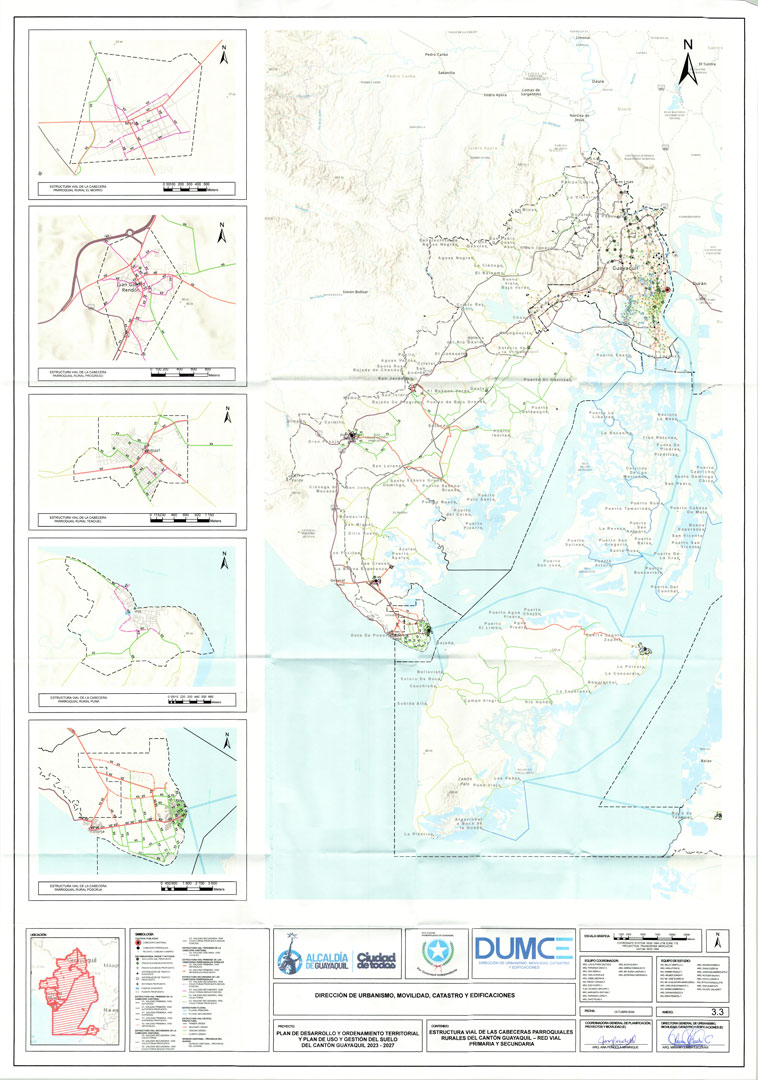 El sistema de conectividad vial contiene las estructuras de diferente tipo en la zona urbana del cantón, las cabeceras parroquiales rurales y las vías ubicadas en las zonas de expansión urbana, construidas por el Gobierno Autónomo Descentralizado Municipal de Guayaquil para la movilidad terrestre de los vehículos, ciclistas, peatones y semovientes.