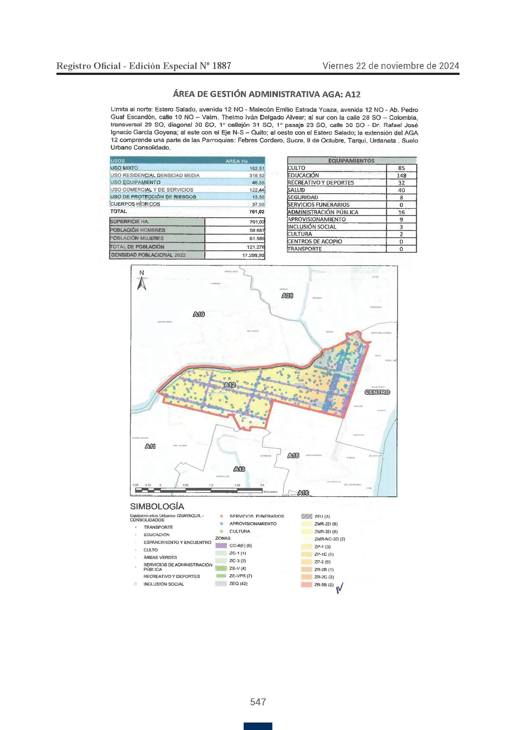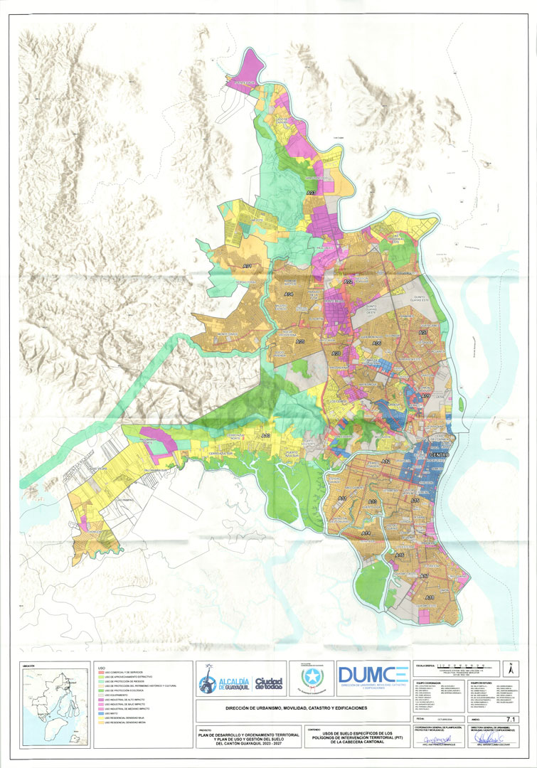 La actualización del PDOT y PUGS para el período de gestión 2023-2027 del Municipio de Guayaquil se aprobó en segundo y definitivo debate por el M. I. Concejo Cantonal de Guayaquil el 5 de noviembre de 2024.