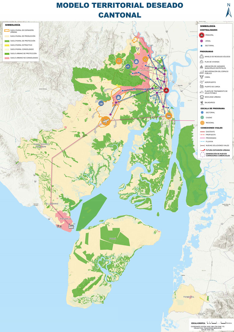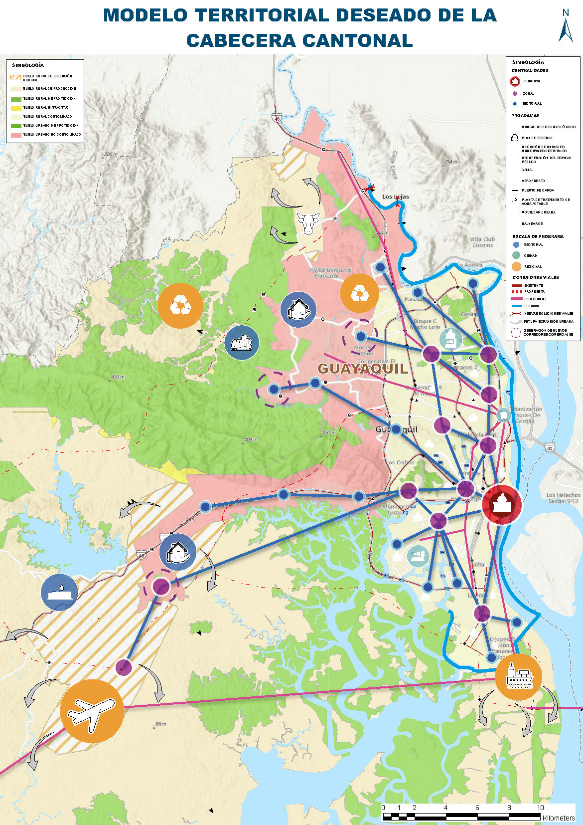 El modelo territorial deseado proyecta la imagen ideal del cantón en el marco de las competencias del Municipio de Guayaquil y en función de las decisiones estratégicas para el desarrollo de su territorio.
